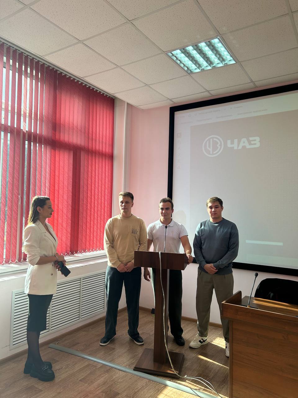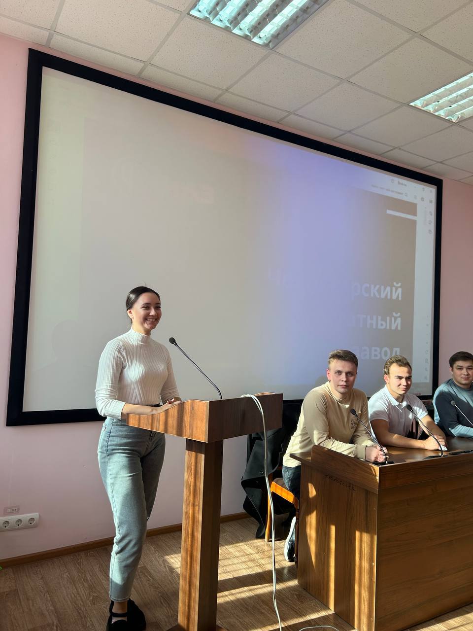 Во встрече приняли участие руководитель проектов ОУП Варвара Федорова, председатель Совета молодежи Мария Васильева и молодые специалисты Центра студенческих инициатив и Инженерная смена - Илья Александров, Иван Зотя и Роберт Цветков. Ребята рассказали студентам о своей работе, которую они совмещают с учебой (Роберт и Иван учатся в ЧЭМК, Илья - в ЧувГАУ), о своих наставниках, о жизни молодёжи и участии ее в мероприятиях завода, обсудили возможности трудоустройства и прохождения производственной практики на предприятии.